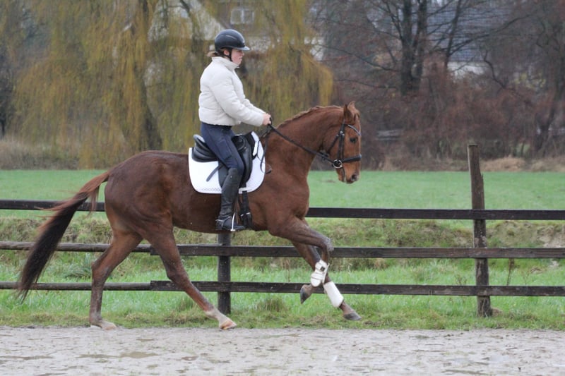 This 2022-born gelding by Livaldon out of a Fürst Heinrich mare is available for sale on behalf of the owner. Lavall has proven to be calm and light to ride after just a few rides under saddle. He is always well-behaved, with an enjoyable forward movement, making every ride both under saddle and on the ground a pleasure. Thanks to his excellent basic gaits and friendly temperament, he can be immediately used in sport and is suitable even for less experienced riders. He is also interesting as a dressage or vaulting horse! If interested, he can be further trained at our stable. Has he caught your interest? Please contact us; we are happy to answer any questions! Additionally, we have several other quality horses available that might be of interest to you. Amelie Schunke Phone: 0151 42463745