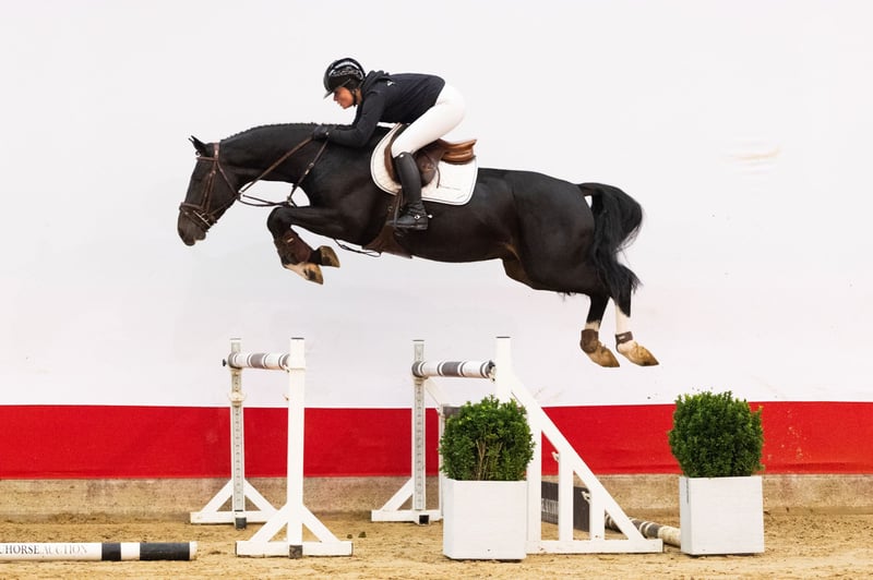 The four-year-old gelding Carlucci is clearly at the start of a promising career. He is ready to enter the ring and shows plenty of blood, a strong work ethic and, above all, powerful push off the ground. His sire, Camp Nou, is a descendant of the 1.50m stallion Coupe Gold and comes from a Hanoverian dam line. Dam Daphira is a Hanoverian mare by Diacontinus (1.50m jumping), a full sister to the eight-year-old Diador (1.30m jumping) and an aunt to Budak’s Casina Berlin (1.40m jumping). The granddam, Zaphira, is a half-sister to Grandira (1.35m jumping). Zaphira’s full sister produced both a 1.35m and a 1.45m showjumper. This horse was previously auctioned, but as the buyer did not meet his obligations, the payment was never completed. The horse itself is exactly as described. Perhaps it’s no coincidence the previous buyer didn’t pay — this horse was simply meant for you!