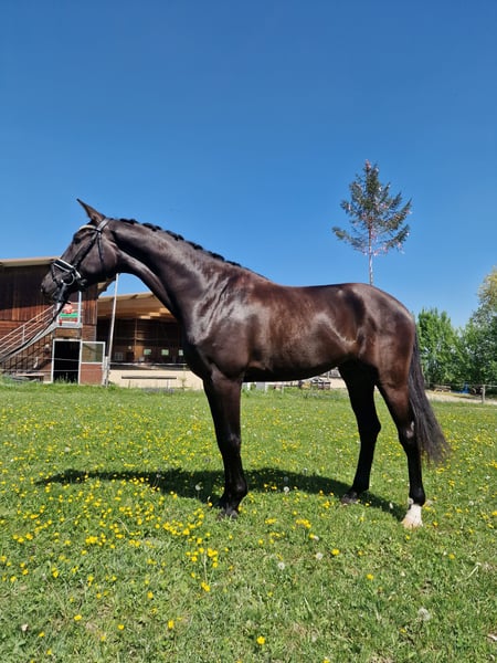 Verkaufe eleganten Hannoveraner Wallach mit super Abstammung. Zum Verkauf steht ein wunderschöner schwarzbrauner Hannoveraner Wallach, geboren im Jahr 2022. Mit einem Stockmaß von 170 cm vereint er beeindruckende Größe und elegante Erscheinung. Er überzeugt durch sein angenehmes Wesen, seine Bewegungsqualität und seine Lernbereitschaft. Der Wallach hat einen super Charakter, brav im Umgang, Lernfähig mit angenehmer GO, Arbeitswillig mit Potenzial fürs Grosses Viereck. Bei Interesse oder für weitere Informationen stehe ich Ihnen gerne zur Verfügung. Ein Besichtigungstermin ist nach Vereinbarung möglich.