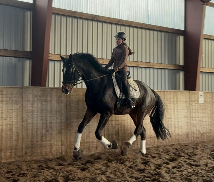 The gelding was backed when he was 3 years old and then turned out to pasture due to his age and size. He has been ridden again for about two months now and is very well-behaved and light in the hand. He handles the outdoor arena without issues, is confident in the terrain, and already jumps small fences under saddle. He is also a friendly and easygoing horse in handling. Directly from the breeder, good X-ray results are available. For inquiries, please contact 01602428444.