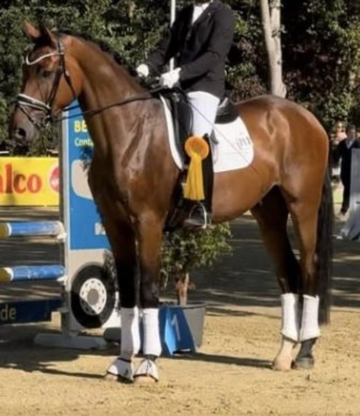 Caballo de gran tamaño que se clasificó el año pasado para el Campeonato Federal. Ha obtenido muchas victorias y colocaciones en concursos de doma clásica para caballos de salto. Sin embargo, no es apto para jinetes principiantes, por lo que su precio está claramente por debajo de su valor real. Es tranquilo para montar tanto en la pista cubierta como en la pista al aire libre y en el campo. No obstante, si se mantiene una sujeción fuerte en la parte delantera y se aplica presión hacia abajo, puede bloquearse en ocasiones. Sin embargo, este tipo de monta no es deseable y NO se venderá a personas que monten de esa manera. ¡En cuanto se vuelve a dar la mano con suavidad, todo vuelve a estar en orden! Se vende únicamente a jinetes que puedan ofrecer un entrenamiento adecuado.