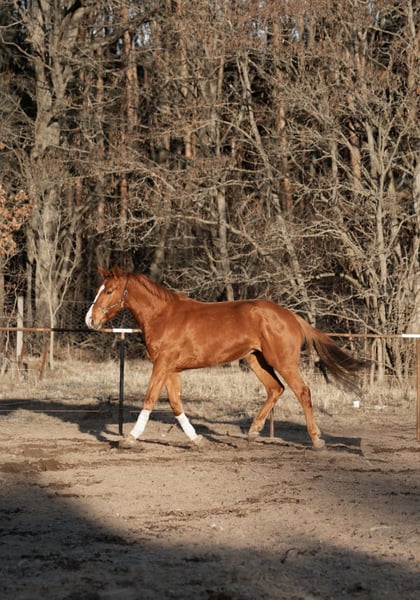 Dexter ist ein außergewöhnlicher 4-jähriger Hannoveraner Wallach, 1,78 m groß, der durch Abstammung, Vermögen und Charakter sofort ins Auge fällt. Sein Halbbruder ist bereits bis 1,50 m im Springsport erfolgreich, und er selbst stammt aus einem hoch erfolgreichen Sportstamm, der Platzierungen bis ins internationale S-Springen hervorbringt (Diego de Semilly (Diarado) x Stalypso). Dexter besticht durch seine Robustheit, Gelassenheit und Lernbereitschaft. Aufgewachsen im Offenstall auf großer Wiese, hat er eine gesunde, stressresistente Mentalität entwickelt und kennt Wald, Straßen, Gelände und Auswärtstraining. Er bleibt selbst in unbekannten oder herausfordernden Situationen ruhig, aufmerksam und lösungsorientiert. Unter dem Sattel ist Dexter bereits in allen drei Grundgangarten geritten. Im Freispringen zeigt er Mut, Vermögen und exzellentes Distanzgefühl. Er scheut nicht, zögert nicht und behält immer die Ohren nach vorne, ein Zeichen für Konzentration, sportliche Motivation und natürliche Sprungbereitschaft. Darüber hinaus meistert er Tierarzt, Schmied und Anhänger souverän, was seine Alltagstauglichkeit unterstreicht. Charakterlich überzeugt Dexter durch seine freundliche, verschmuste und zugleich sehr aufmerksame Art. Er ist lernfähig, motiviert und arbeitet stets mit – man merkt deutlich, dass er mitdenkt und gefallen möchte. Seine verspielte und neugierige Persönlichkeit macht ihn im täglichen Umgang zu einem echten Partner, der schnell Vertrauen aufbaut und eine enge Bindung zum Menschen eingeht. Dabei vereint er Gelassenheit mit sportlicher Energie – keineswegs träge, sondern leistungsbereit und engagiert. Durch diese Kombination ist er sowohl für ambitionierte Reiter als auch für jüngere, verantwortungsbewusste Reiter interessant, die ein zuverlässiges und freundliches Pferd mit sportlicher Perspektive suchen. Dexter ist ein Pferd, das bereits viel erlebt hat, solide Grundlagen besitzt und nun bereit ist, sein enormes Potenzial unter Reiterhand zu entfalten. Er bietet eine vielseitige Basis für große Ziele im Sport, kombiniert mit einer Persönlichkeit, die sowohl Vertrauen als auch Freude am Umgang vermittelt.