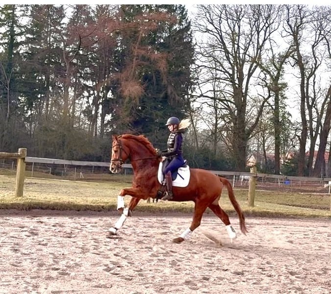 Excellent Youngster by Secret - Vivaldi We are offering a particularly charming five-year-old gelding with whom you can start the competition season right away! Three outstanding basic gaits, lightness, and calmness are qualities that this friendly gelding undoubtedly possesses. He is also exemplary in handling. From a well-known breeding farm and a successful sport lineage, he is a direct half-brother to Bon Courage. A dream horse for ladies and young riders, one that is hard to find! Fully vetted.