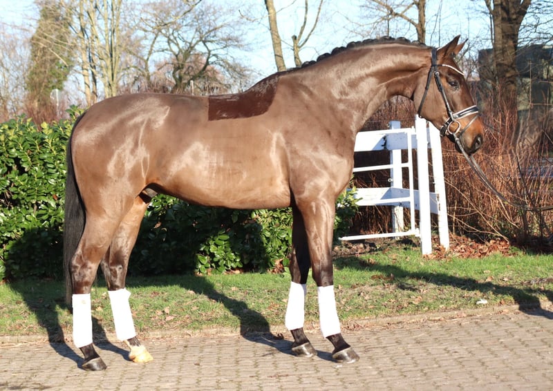 Charismatic 5-year-old gelding by Sir Donnerhall out of Rubin Royal/Weltmeyer, from a successful dam line. The gelding has three very good basic gaits and is a pleasure to ride. He offers all the potential for a successful future. Price plus VAT. Inquiries only by phone, emails will not be answered.