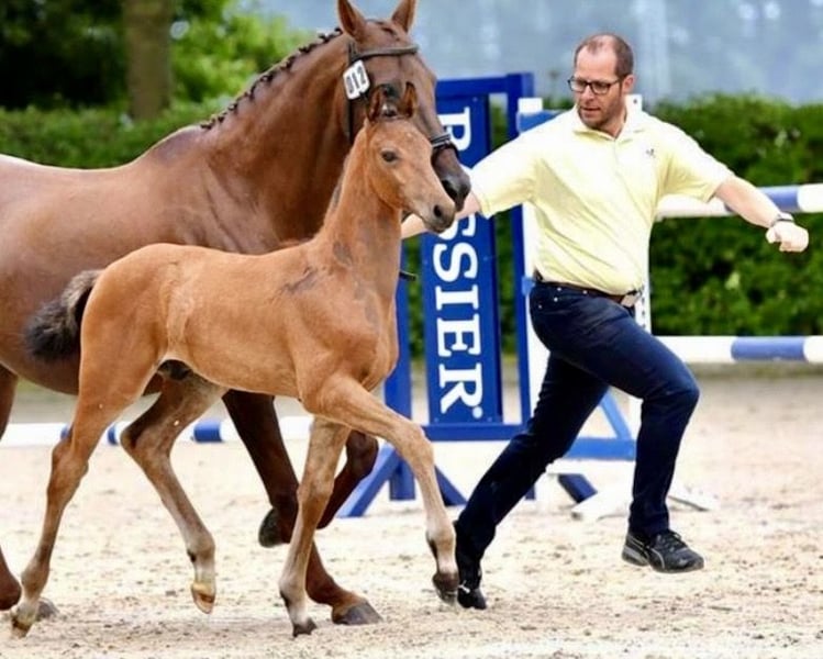 Calimero MW ist ein altersgemäß ausgebildeter talentierter Wallach mit erster Turniererfahrung. Ganz aktuell Springpferde A** mit 8,1. Er ist beim Züchter aufgestallt und geht tagsüber in einer Kleingruppe auf den Auslauf/Weide. Er ist sehr neugierig, verspielt und eher rangniedrig.