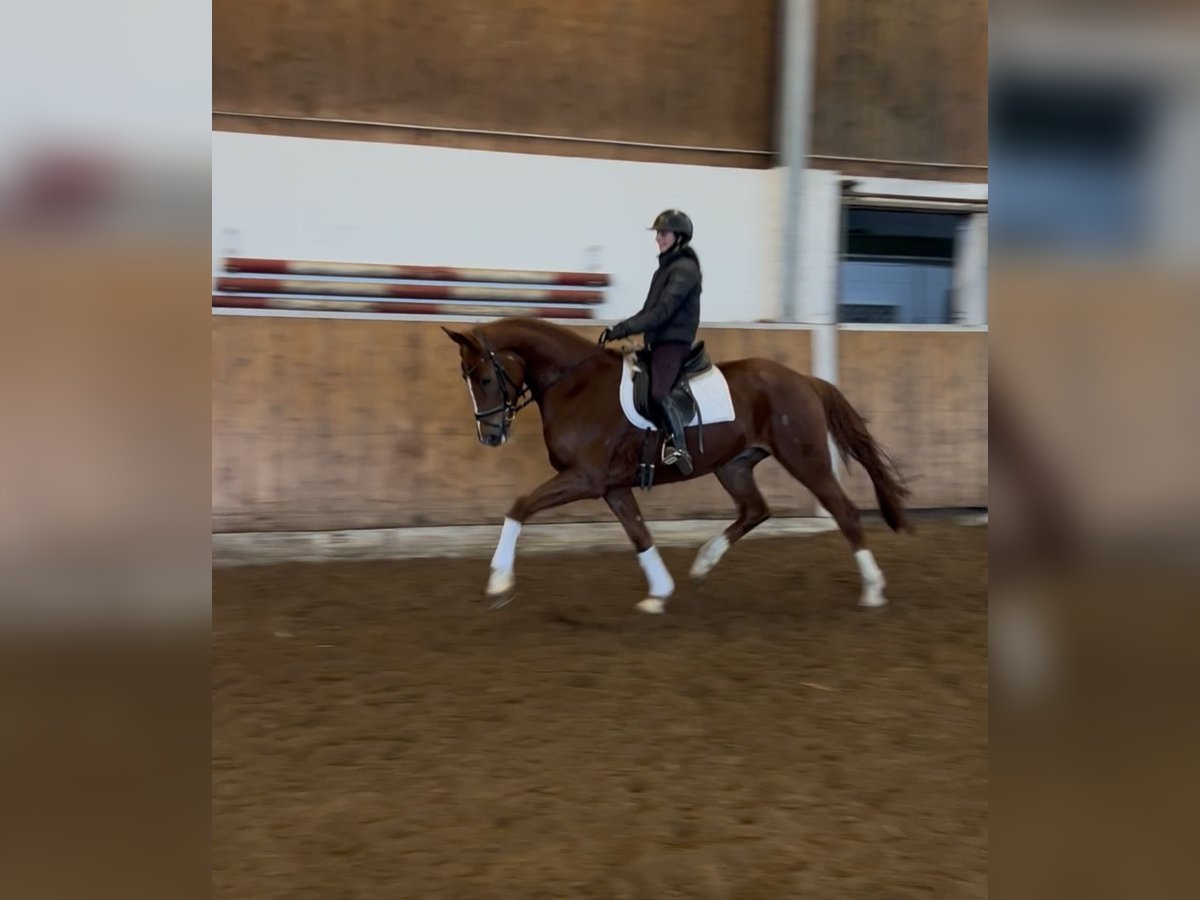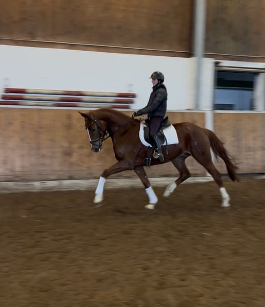 **Sales Advertisement: Hanoverian Gelding** For sale is a beautiful Hanoverian gelding, born in 2021. With a height of 170 cm and his striking chestnut color, he is a real eye-catcher. This talented gelding is excellently suited for dressage and already shows promising progress in his training. He is well-mannered, well-ridden, and has a pleasant temperament. He is suitable for both experienced riders and ambitious beginners who wish to continue training with him. If you are interested or need further information, please feel free to contact me. Visit us and see for yourself this wonderful horse!