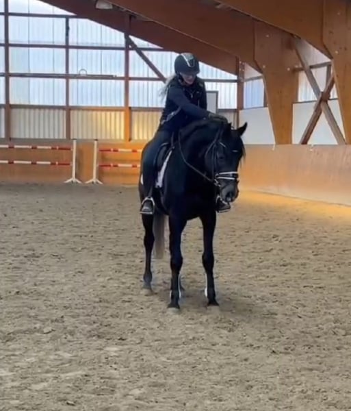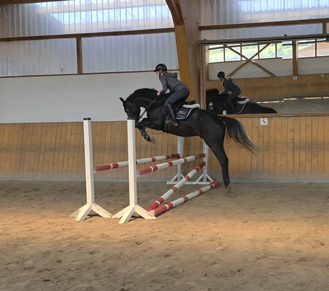 Este encantador semental de 4 años está a la venta directamente del criador. Actualmente está siendo montado para su doma y es muy sociable y dispuesto a aprender. Es hábil y capaz en salto libre. Se está convirtiendo en un gran compañero deportivo. Actualmente mide aproximadamente 1,63 metros. Es hijo de Casino Berlin de una madre Malachit xx x Radiator. Posibilidad de adiestramiento de prueba. Detalles de la línea materna: Línea materna probada con mucho alcance e inteligencia