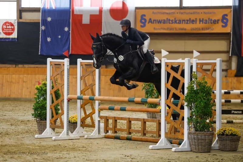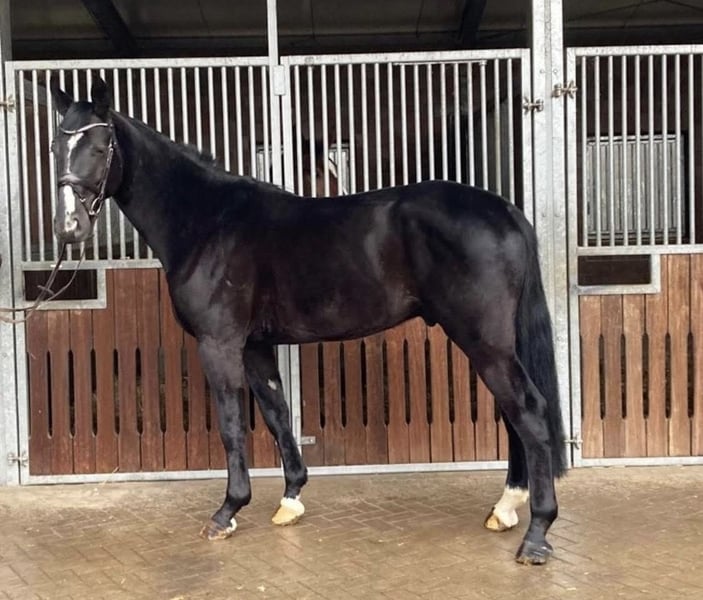 A stunning black gelding, this horse is an absolute eye-catcher both visually and performance-wise. He was purchased as a foal and has been gently and correctly trained from the beginning. This gelding impresses with excellent basic movements, his fearless and brave nature, and a clear mind. He is not spooky, always attentive to his rider, and easy and enjoyable to ride – a horse you look forward to bringing out of the stable every day. Despite his young age, he is very well-behaved in handling, even at competitions. Intended disciplines: - Show jumping > multiple placings in A-level jumping competitions and winner of a basic training test - Dressage - Eventing / trail riding A perfect all-rounder for ambitious leisure riders or sport enthusiasts. Thanks to his reliability, character, and rideability, we can particularly see him as a suitable schoolmaster for a young rider with potential.