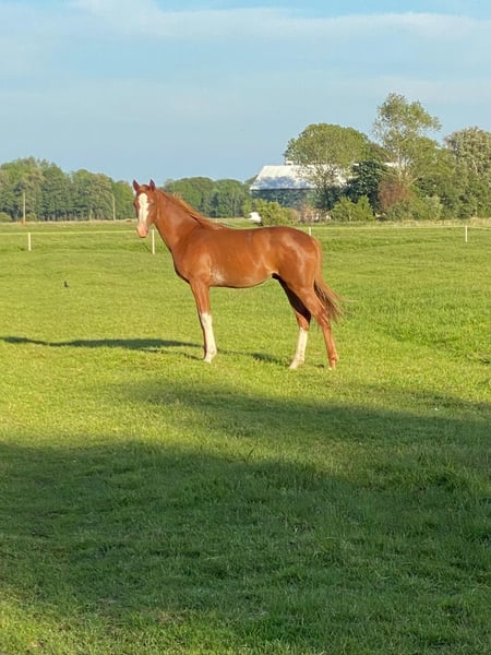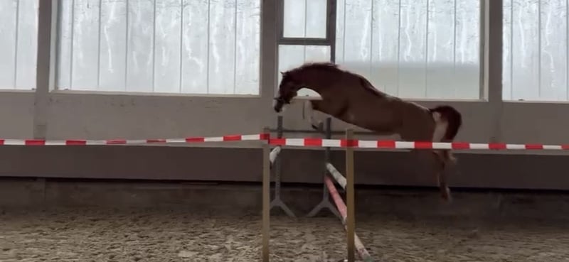 A talented Hanoverian gelding with great potential is for sale. The 5-year-old Harlequin stands approximately 16.1 hh and is currently in age-appropriate training. He impresses with his bravery, willingness to perform, and a very good work attitude. During free jumping and initial under-saddle exercises, he demonstrates exceptional talent and always maintains great composure. Harlequin is farrier- and loading-friendly and is uncomplicated in daily handling. He is herd-safe and familiar with both stable and pasture life. He has already gained some experience in the terrain and on the beach. He is ideally suited as a young prospect for ambitious riders seeking a horse with quality and development potential. A TÜV report without findings from June 2025 is available. Further information, along with photos and videos, can be provided upon request. Please contact via WhatsApp: 0176 31071625