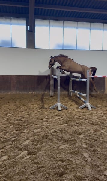 Samra ist ein junger, schicker, vielversprechender Wallach mit bester Springabstammung und hervorragender Einstellung zur Arbeit. Er zeigt sich unter dem Sattel stets motiviert, lernwillig und dabei angenehm im Handling. Im täglichen Training springt er immer zuverlässig, zeigt dabei eine gute Manier, Übersicht und Mut, ohne je überfordert zu wirken. Aktuell springt er bereits einen kleinen Parcours. Er ist noch nicht auf Turnieren vorgestellt, bringt aber klar das Potenzial für den gehobenen Springsport mit. Durch sein korrektes Gebäude, seinen ehrlichen Charakter und seine Arbeitsfreude ist Samra ein ideales Pferd für Reiter, die sich einen jungen Partner mit Zukunft wünschen. TÜV: Ohne Befund Aktuell Barhuf Videos auf Anfrage