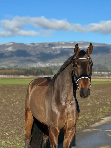Und zum Jahresende noch ein richtiges Highlight! Dieser Wallach ist mit 3 wirklich sehr guten GGA ausgestattet und dazu kombiniert mit mega tollen Rittigkeitswerten. Er will immer alles richtig machen und weiß mit ganz viel Charme jeden Tag zu überzeugen. Als ob das nicht schon toll genug wäre, kann man auch ganz entspannt ins Gelände, von Jedermann händelbar im Umgang, und auch der TÜV ist hier kein Haken! Vielleicht ist er im Seitenbild nicht der modernste Typ, jedoch mit bestem Fundament, top Hufen und Gliedmaßen ausgestattet. Hier bekommt man das seltene Komplettpaket, das in der heutigen Zeit so schwierig zu finden ist! Mit dem richtigen Management und der nötigen Zeit wird hier in der Zukunft etwas ganz Besonderes heranwachsen. Im Interesse des Pferdes und zur Verhinderung des Probereiten-Tourismus kostet ein Probereiten 60 sfr, die Ihnen beim Kauf vollumfänglich zurückerstattet werden. Ebenfalls haben wir auch immer wieder Pferde, die aus Diskretionsgründen nicht im Internet erscheinen. Sprechen Sie uns sehr gerne auf allen medialen Kanälen an, vielleicht haben wir Ihr Traumpferd bereits in unserem Stall stehen.