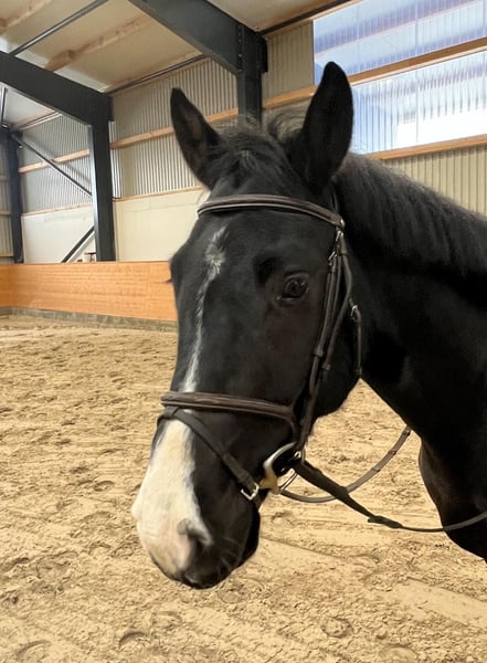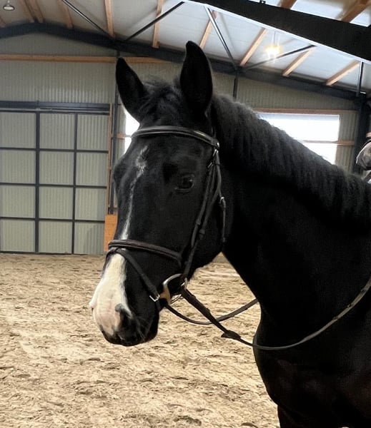 Shelby was born here in 2021 and was allowed to grow up peacefully and in a species-appropriate manner. At the end of 2025, he was gently backed as a four-year-old. Since then, he has proven to be very eager to learn, balanced, and consistently well-behaved under the rider. He already jumps small courses with confidence and enjoyment of work. He impresses with his rideability, good attitude, and pleasant demeanor. In daily handling, Shelby is also completely straightforward. He is farrier- and loading-friendly and always friendly and reliable. A promising young partner for sport and leisure, with excellent potential for further training. If you are seriously interested, we look forward to hearing from you.