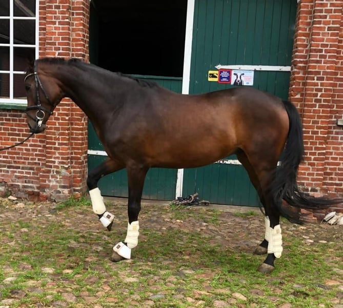 Verkaufe eleganten Hannoveraner Wallach Zum Verkauf steht ein wunderschöner Hannoveraner Wallach, geboren im Jahr 2021. Er besticht durch sein dunkelbraunes Fell und seine beeindruckende Größe mit einem Stockmaß von 170 cm. Der junge Wallach ist gut ausgebildet, freundlich im Umgang und zeigt viel Potenzial für den ambitionierten Reiter. Dieser vielseitige Wallach ist ein echter Blickfang und bereit, seine neuen Besitzer zu begeistern. Er befindet sich derzeit im Beritt. Bei Interesse stehe ich gerne für weitere Informationen und eine Besichtigung zur Verfügung. Unter Tel.-Nr. 0176-41710805