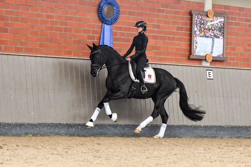 Attraktives Erscheinungsbild im herrlichen Anstrich mit figuranten Proportionen. Charmant im Umgang mit feinem Wesen und verlässlicher Einstellung. Ganz akzentuierter Ablauf mit schöner Bewegungsmechanik und leicht zu reiten. Patent, stabil und furchtlos mit exquisiter Abstammungskombination. Reitpferdeprüfung gewonnen und platziert, Dressurpferde A aktuell hoch platziert.