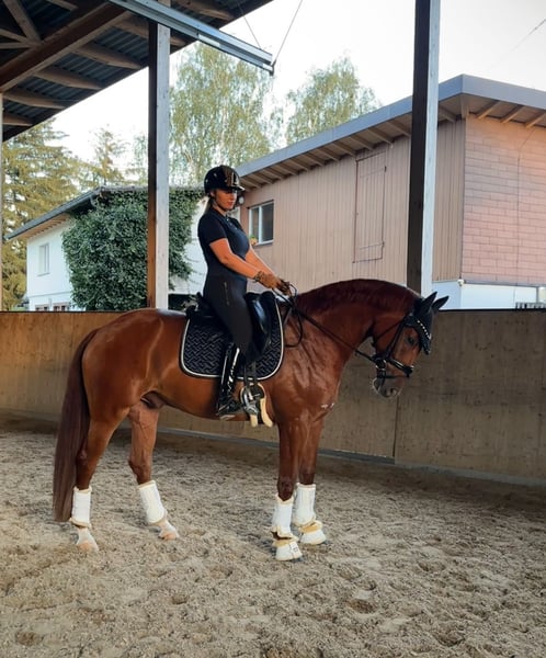Dreamy Hanoverian Gelding** For sale is an impressive Hanoverian gelding, born in 2020. With a height of 171 cm and his beautiful chestnut color, he attracts all attention. This talented gelding is well-suited for dressage and is already showing promising progress in his training. He impresses with his elegant movement and his friendly, balanced temperament. He is well-mannered, well-educated, and suitable for both experienced riders and ambitious riders looking for a promising horse for the future. Achievements: Young horse competition won with over 81%. If you are interested or need further information, please feel free to contact me. Don't miss this opportunity to find such a wonderful partner!