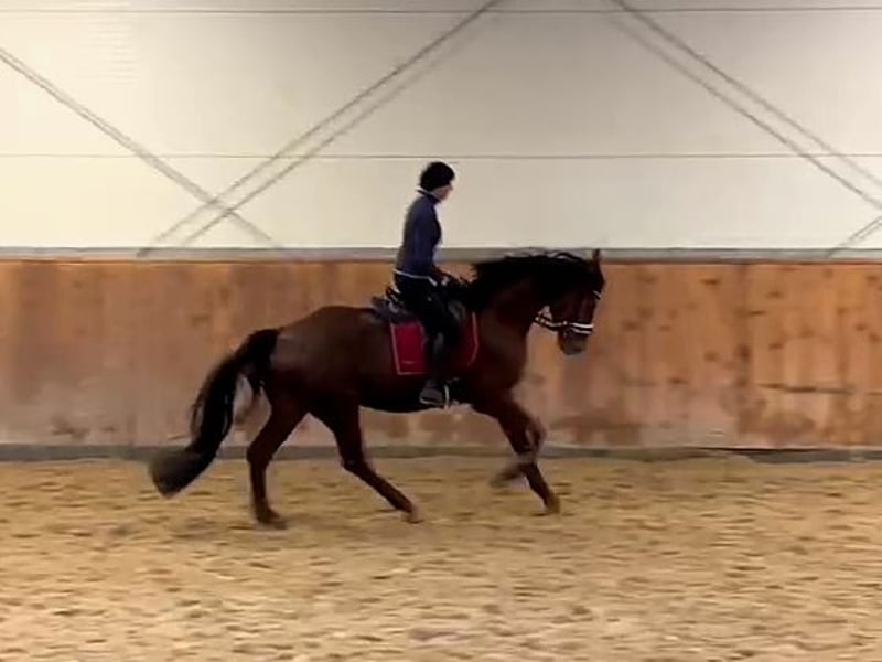 Questo splendido cavallo da dressage si trova a un livello consolidato di Dressage Horse A e sta iniziando la sua formazione. La sua prima partecipazione a una gara è in preparazione! Il castrone ha un buon impulso e trasmette una sensazione di ottimo equilibrio durante il lavoro. Offre molte prospettive, facilità di conduzione, gioia nei movimenti e ottima qualità di movimento. Grazie alla sua duttilità, alla buona formazione di base e al suo carattere vivace, questo cavallo è adatto a tutti i cavalieri di dressage ambiziosi. Il castrone abbellisce ogni arena e, con il giusto supporto, sarà sicuramente anche un protagonista nel mondo delle gare. È affidabile nel lavoro quotidiano e sotto la sella. Il castrone è sempre educato e motivato. Si carica senza problemi e senza difficoltà. Saremmo lieti di mostrarvi questo meraviglioso cavallo da dressage dal vivo e restiamo a disposizione per qualsiasi domanda! Potete contattarci anche tramite WhatsApp: +49 176 55323449. Il castrone ha un pedigree di prima qualità ed è figlio dell’eccezionale stallone premiato Maracaná (stazzo Bonhomme). Maracaná ha vinto il suo test sportivo con votazioni eccellenti (9 e 10) e ha completato il suo test di 14 giorni con voti da sogno per la sua disponibilità e facilità di conduzione (9,5 e 9,0). Si è qualificato per il Bundeschampionat ed è stato promosso con successo fino alla classe M di dressage (più volte 10,0 per la sua duttilità). Lo stallone si distingue per la sua forza naturale nei movimenti, elasticità, il posteriore attivo e potente, e un’estetica corretta. Attualmente, Maracaná lavora come stallone da monta in Australia. Derivato dal rinomato ceppo di fattrici Hannoverane della famiglia Schildamsel.