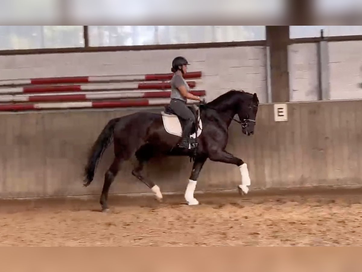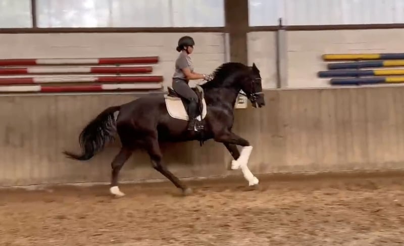 For sale is an impressive gelding, born in 2020. He presents himself in an elegant black coat and has a height of 171 cm. This black horse is characterized by his willingness to work and talent for collection. If you are interested or need further information, please feel free to contact me. Visit us and get to know this great gelding in person!