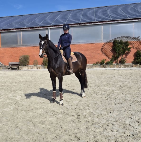Te koop staat een 6-jarige merrie, ongeveer 1,68 m hoog, die bij ons geboren, opgegroeid, aangezet en zorgvuldig opgeleid is. Ze is zeer braaf in omgang en onder het zadel, "door iedereen te rijden", licht en aangenaam om te berijden, en biedt uitstekende voorwaarden om samen mooi te groeien. Ze is zeer geschikt voor herintreders, beginners, maar ook voor ambitieuze recreatie- en wedstrijdruiters. Om reittourisme te voorkomen, rekenen wij €30 voor het proefrijden.