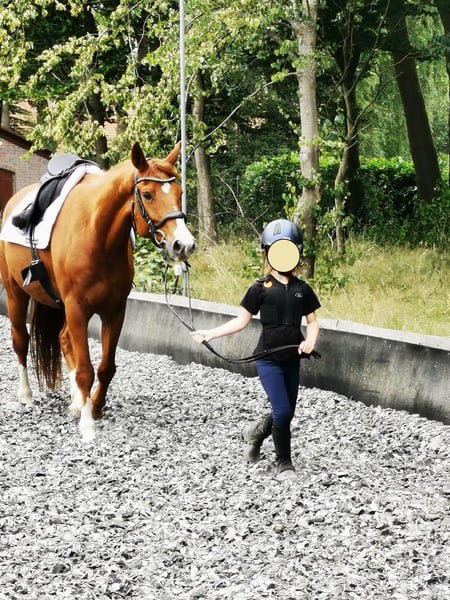 Deze 6-jarige Hannoveraan is een prachtige bontgekleurde, donkere vosruin met een schofthoogte van ca. 1,67 cm, afstammend van Destano - Desperados x Don Frederico - Rubinstein I. Hij verrast niet alleen met zijn fijne dressuurbloed, maar ook met zijn geweldige werkhouding: de video met het witte zadeldek is gemaakt na 3 weken vakantie. Hij is gewoon een plezier om mee te werken! De tweede video is gemaakt toen hij 5 jaar oud was, na 4 weken training; hij heeft daarvoor de tijd gekregen om lichamelijk te ontwikkelen. Met veel schwung, taktzuiver en licht in de hand, is hij het afgelopen jaar serieus op A-niveau getraind en begint nu met de allereerste L-oefeningen. Vanwege zijn afstamming heeft hij geen moeite met draagkracht en zelfhouding. Hij heeft voldoende werklust, maar is absoluut niet te sprongetjesachtig in de baan en laat zich uitstekend op stem en ademhaling rijden. In het kader van de eerste basisopleiding heeft hij een kleine E-parcours gesprongen. Tijdens de omgang voor het paardenrijbewijs heeft hij braaf met kinderen aan de grondwerk getraind; ook bruggen en zeilen kent hij. Hij loopt zonder hulpteugels (ook aan de longe) met kinderen en minder ervaren ruiters op de bak en in de hal - hier vergeeft Olaf fouten probleemloos. Hij past zich in de baan aan het niveau van de ruiter aan. Hij kent buitenritten, zowel alleen als in groep, onder een ervaren ruiter op A-niveau, want hier heeft hij vanwege zijn leeftijd nog zekerheid van bovenaf nodig op onbekende routes. Olaf is zeer verkeersveilig (ook grote landbouwmachines) en gaat ook door water. Hij kent uiteraard vreemde plaatsen en hallen. Nog niet op wedstrijden voorgesteld. Absoluut lief bij het inspuiten, afspuiten, dierenarts, hoefsmid, laden en in de dagelijkse omgang. Hij loopt zonder ijzers. Kent een open stal en paddockbox. Olaf zou zeker zeer geschikt zijn voor een ambitieuze recreatieruiter met een dressuurfocus, als gezinspaard voor ervaren mensen of ook voor goede rijscholen.