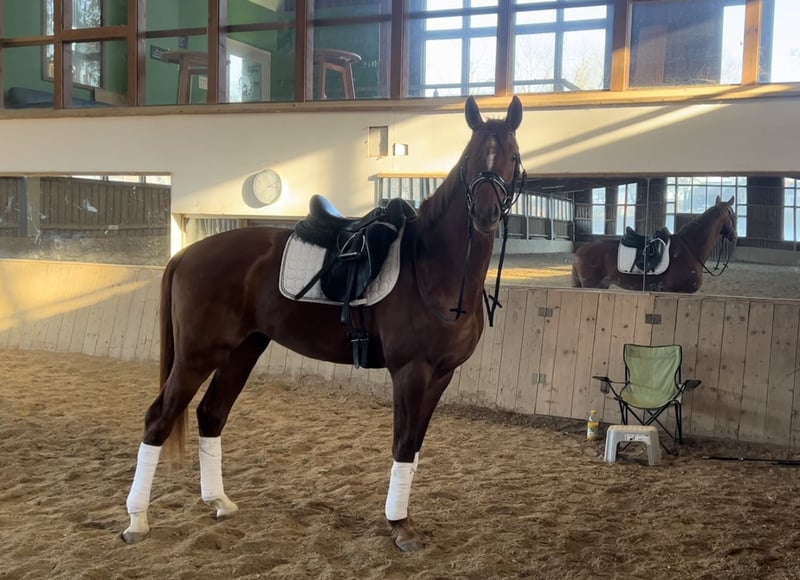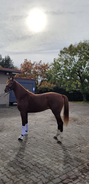 Beautiful typey chestnut gelding with lots of Go! Dream character and nerve strength from sports and breeding successful dam (state premium mare)! About De Niro - Totilas -Don Frederico equipped with the best dressage blood ! Extremely lovable and cuddly to deal with! Extremely motivated and eager to learn in his daily work. Very good current AKU from the Hannoveraner Verband available!