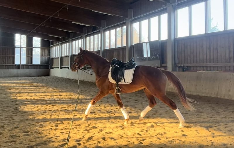 ¡Hermoso y típico caballo castaño! ¡Carácter de ensueño y fortaleza nerviosa proveniente de una madre con éxitos en deportes y cría (yegua premiada del estado)! ¡Equipado con el mejor sangre de doma a través de De Niro - Totilas - Don Frederico! ¡Extremadamente cariñoso y mimoso en el trato! ¡Sumamente motivado y ansioso por aprender en el trabajo diario! Conoce el trabajo en el suelo (Natural Horsemanship), paseos, está lungado y conoce el peso del jinete. ¡Muy buena revisión veterinaria actual del Verband Hannoverano disponible! ¡Para más información o preguntas sobre visitas, no dudes en contactarnos!
