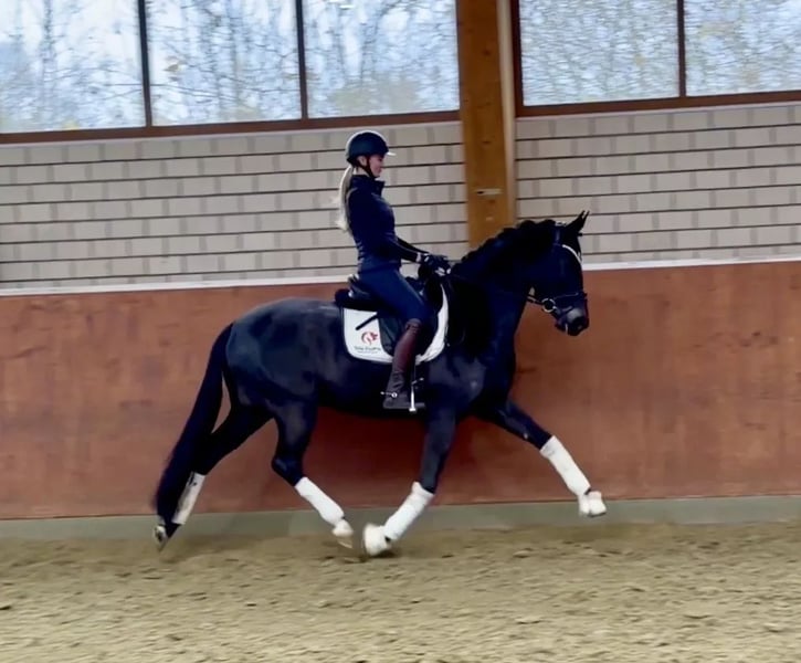 EscaHit is a stunning Hanoverian gelding who combines expressive movement, rideability, and a naturally uphill build with a bright future in dressage. Bred for talent and produced carefully, he is a horse with all the raw quality to develop into a serious competitor for a rider looking to bring along a young partner. Training & Show Experience EscaHit has been thoughtfully started and correctly developed. He has shown locally at First Level with success and is confidently schooling movements from Second and Third Level, including counter canter, half pass, and flying changes. His gaits are expressive yet comfortable to sit, with a particularly elastic trot and a canter that shows excellent potential for collection. His foundation of training is solid, and he is now ready to continue progressing with a rider who wants to put the finishing touches on a talented young horse. Temperament & Rideability EscaHit is best described as a sensitive yet willing partner. He thrives with a rider who is tactful, confident, and appreciates a forward-thinking horse. While he is naturally energetic, he is always generous and tries to understand what is being asked of him. His kind personality makes him a joy to work with on the ground, and he is as easy to handle in the barn as he is elegant under saddle. Contact us today for price, video, and further details.