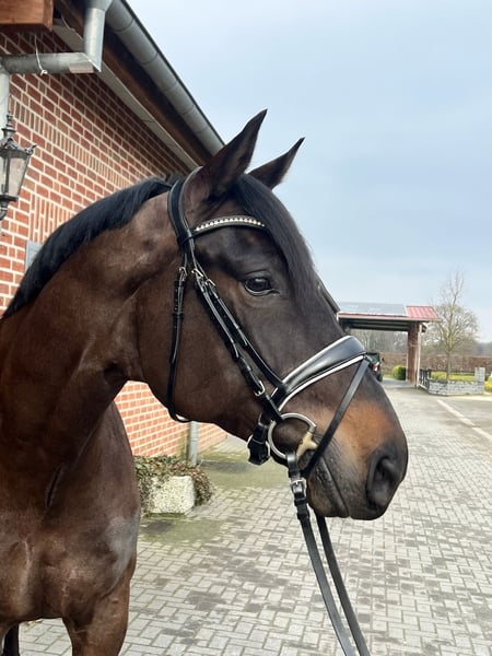 Six-year-old Hanoverian gelding seeking a new environment to develop his potential. He impresses with his modern conformation, three outstanding basic gaits, and great potential for higher levels. Fusionist is a movement-rich dressage horse with excellent rhythm and a lot of expression. In daily training, he delights with his eagerness to learn, willingness to perform, and fearless nature. He is currently being introduced to the movements of the M-level and is mastering them more and more confidently. Flying changes are already quite secure! A handsome young gelding that will bring joy to both professional riders and ambitious amateurs. In handling, he is uncomplicated, shoe- and loading-trainable. Healthy, rideable, and eager to learn, he is ready for his new owners. A promising dressage prospect with championship potential – prepared for supportive hands in advanced sport. Location: Ahaus, Germany – trial rides available. For further inquiries: +43 67683414227