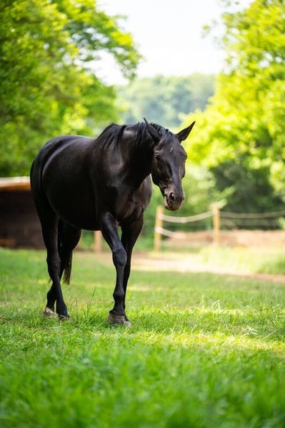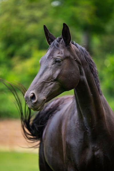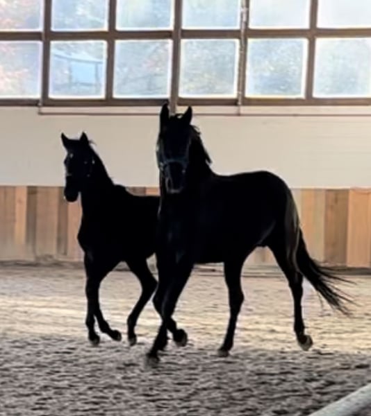Aufgrund mangelnder Reiter und Einstellung der Zucht bieten wir diese wunderschöne Rappstute gerne als bedingt reitbar und zur Zucht an. Diese Stute wurde gut angeritten und zeigte sich brav unter dem Reiter. Sie entwickelte leider eine nicht zuverlässig abklärbare Taktunreinheit, die allerdings bei konstantem Training geringer wird. Diese Stute entstammt einem sehr bekannten Hannoveraner Stutenstamm. Ihr Vater war Weltmeister der jungen Pferde, von dem sie die sehr gute Bewegung geerbt und auch an ihre Tochter weitergegeben hat, die auch zum Verkauf steht. Standort bei Aachen