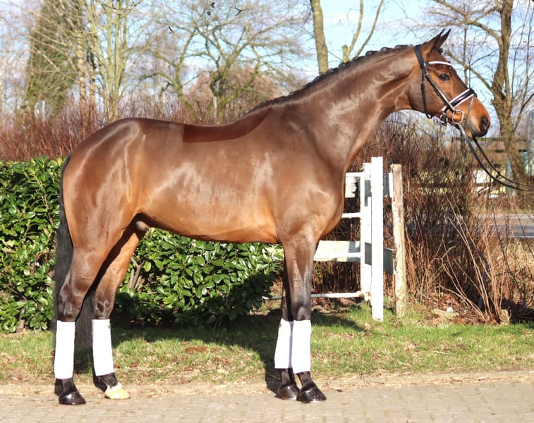 Superbe hongre de 6 ans par Fürst Belissaro x Wolkenstein, avec 3 très bonnes allures de base. Il a été monté tardivement et n'est donc pas encore très avancé pour son âge, mais il se montre gentil à manipuler et est agréable à monter. Prix hors TVA. Les demandes uniquement par téléphone, les e-mails ne seront pas répondus.