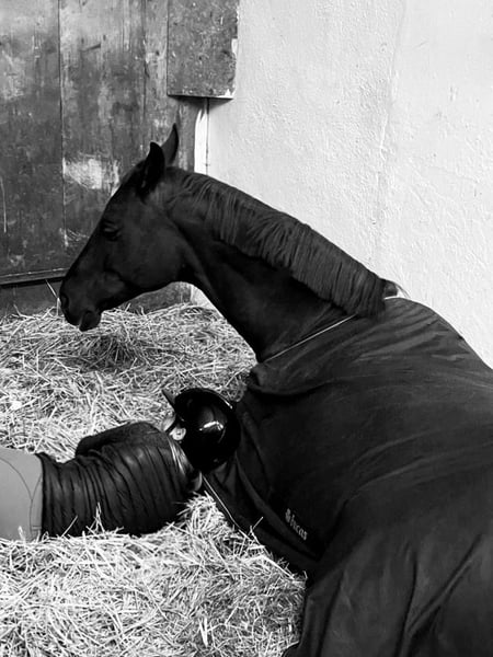 Romi is pain-free, lively, and enjoys movement. Movement is important to him—just without a rider. Groundwork, walks, grooming, and social contact are still possible.