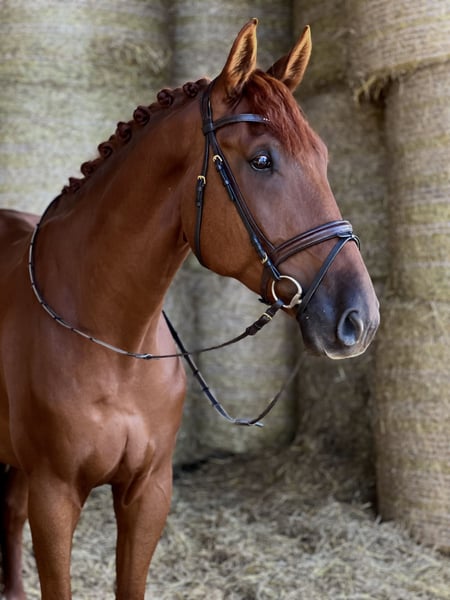 À vendre, un magnifique alezan foncé, né en 2018, issu de Tannenhof's Fahrenheit. Il se distingue par ses trois allures de base attrayantes, sa tête claire et son caractère exceptionnel et sensible. Toujours motivé et désireux de bien faire, il est un véritable partenaire de cœur. Actuellement, il évolue en dressage à un niveau L solide. Il montre également de la joie et du talent en saut d'obstacles et parcourt les parcours avec aisance. En extérieur, il est fiable et intrépide – que ce soit seul ou en groupe. Il est sociable avec les autres chevaux, se laisse ferrer et charger sans problème, et se montre toujours amical, attaché aux humains et sensible dans ses interactions quotidiennes. En raison de son caractère clair et sensible, il convient également aux cavaliers amateurs ambitieux ou aux jeunes cavaliers. Pour toute question, je suis à votre disposition pour plus d'informations ou pour convenir d'un rendez-vous de visite – également par WhatsApp. Les frais pour l'essai monté s'élèvent à 30 € et seront bien entendu déduits en cas d'achat.