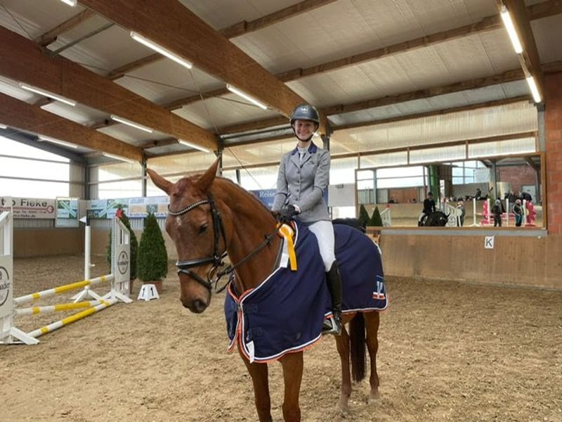 Vente d'un hongre Hannoverien – Parfait pour les cavaliers de saut d'obstacles ! À vendre directement du élevage, un élégant hongre Hannoverien alezan. Doté d’un bon potentiel pour le saut, bien dressé, il a déjà prouvé ses capacités en compétition avec plusieurs classements. Il est amical en main, montable, sûr en terrain varié et convient aussi bien à un cavalier de loisir ambitieux qu’à la compétition. Pour toute question ou intérêt, je reste à votre disposition. Une visite et des essais en carrière sont possibles sur rendez-vous.