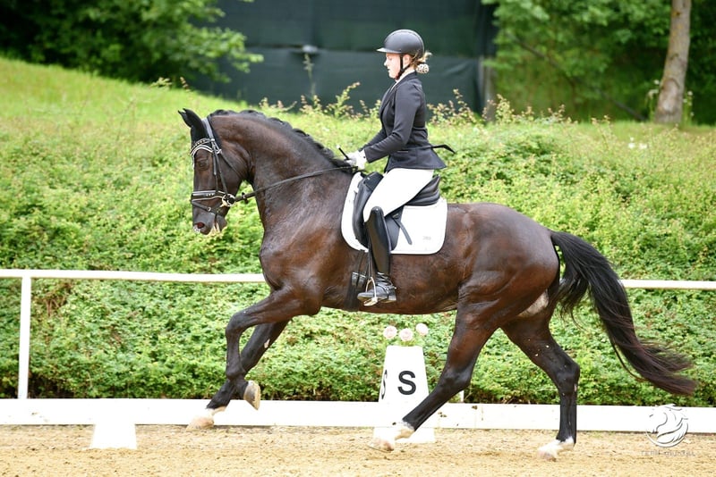 Quickstep es un caballo gelding Hannoverano de 8 años, aproximadamente 1,75 m de altura, y está en mi posesión desde hace 4 años. Ha sido entrenado hasta nivel M** y ha sido presentado en concursos. Es naturalmente calmado en el remolque, tranquilo en el herradero, y monta solo o en grupo en el campo. Disfruta de trabajar en los obstáculos y en los cavaletti. No muestra ningún comportamiento problemático ni en el suelo ni bajo la silla. Debido a hallazgos médicos y al estrés aumentado en concursos de mayor nivel, no deseo seguir presentándolo en competiciones de alto rendimiento. Busco para él un buen lugar donde alguien pueda divertirse con él y aprender de él como maestro. Q siempre está muy motivado, dispuesto a trabajar y disfruta de cualquier tipo de actividad. Está completamente en entrenamiento y no requiere un manejo especial. Se puede adquirir una silla adecuada y otros accesorios si se desea. Información sobre los hallazgos médicos y otros detalles solo por teléfono al +43 676 5398780. Ubicación cerca de Linz, Alta Austria – Por supuesto, es posible realizar una prueba de monta.