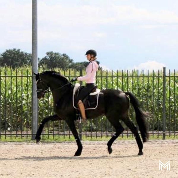 Een zeer aantrekkelijke zwarte ruin met een gevorderd trainingsniveau. Een zeer aantrekkelijke en uitzonderlijk opvallende zwarte Hannoveraanse ruin, ideaal voor de ambitieuze ruiter die wil excelleren in zowel gevorderde dressuur als springen. Deze elegante verschijning combineert een krachtig en correct exterieur met een natuurlijke uitstraling en aanwezigheid in de baan. Hij beschikt over drie hoogwaardige basisgangen: een ruime, zuivere stap, een elastische en expressieve draf met veel schoudervrijheid, en een krachtige, bergopwaartse galop die hem uitermate geschikt maakt voor het hogere dressuurwerk. In de dressuur toont hij veel aanleg, balans en souplesse, en hij heeft het talent en de instelling om verder door te groeien naar de hogere klassen. Ook in het springen laat hij zich van zijn beste kant zien, met een goede techniek, veel vermogen en snelle reflexen. Hij springt met overzicht en vertrouwen, wat hem tevens geschikt maakt voor andere disciplines en veelzijdig inzetbaar maakt. Een veelbelovend jong paard met uitstekende beweging, souplesse en fantastische rijeigenschappen. Klaar om op S-niveau (gevorderd) in de dressuur te rijden. Hij is zeer geschikt voor zowel ambitieuze jonge als junior ruiters. Deze ruin heeft een uitstekend karakter: hij is werkwillig, leergierig en betrouwbaar onder het zadel. In de omgang is hij braaf, sociaal en vrij van stalgebreken. Hij is geschikt voor zowel een professionele ruiter als een ambitieuze amateur die op zoek is naar een paard met kwaliteit en toekomst. Hij is volledig gezond en recent klinisch en röntgenologisch goedgekeurd, met schone röntgenfoto’s en een uitgebreid veterinair rapport. Vrij van gebreken en klaar om direct in de sport te presteren. Kortom, een talentvolle en veelzijdige Hannoveraanse ruin met uitstraling, kwaliteit en een eerlijk karakter – een ideale partner voor succes in de dressuur, het springen en daarbuiten.