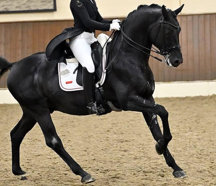 Außergewöhnlich ausdrucksstarker Hannoveraner Wallach, der auf den ersten Blick alle Blicke auf sich zieht. Mit seinem harmonischen Körperbau, der kraftvollen Hinterhand und der eleganten Oberlinie verkörpert er das moderne Sportpferd in Perfektion. Sein edler Kopf mit großen, klaren Augen verleiht ihm nicht nur Ausdrucksstärke, sondern auch einen unverwechselbaren Charme. Dieser wunderschöne Wallach ist zu 100 % gesund. Er verfügt über einen vollständigen Satz aktueller Röntgenbilder sowie umfassende tierärztliche Untersuchungen ohne Befund – eine verlässliche Grundlage für eine erfolgreiche sportliche Zukunft. Seine hervorragende Gesundheit und Belastbarkeit machen ihn zu einem idealen Partner für ambitionierte Reiter. Er wurde schonend und altersgerecht angeritten und zeigt sich unter dem Sattel stets motiviert, lernwillig und nervenstark. Als angehender Allrounder bringt er beste Voraussetzungen für verschiedene Sparten des Reitsports mit, überzeugt jedoch besonders durch seine herausragenden Qualitäten in der Dressur. Seine drei Grundgangarten sind von hoher Qualität: ein raumgreifender, elastischer Schritt, ein schwungvoller Trab mit viel Takt und Ausdruck sowie ein gut gesprungener, bergauf gerichteter Galopp. Durch seine Rittigkeit, seine feine Anlehnung und seine schnelle Auffassungsgabe eignet er sich ideal für Reiter mit gehobenen Ansprüchen, die ein Pferd mit Perspektive suchen. Gleichzeitig besticht er durch sein ausgeglichenes Temperament und seinen freundlichen Charakter im täglichen Umgang. Ein echter Blickfang mit sportlicher Klasse – ein Pferd, das sowohl durch seine Erscheinung als auch durch seine inneren Werte überzeugt und seinem zukünftigen Reiter viel Freude und Erfolg verspricht.