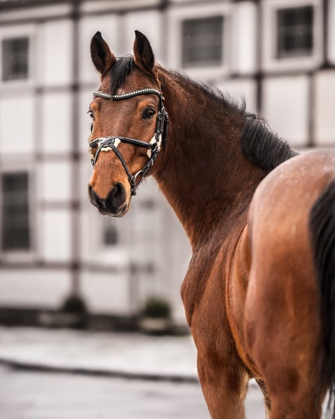 Elegant Hanoverian gelding for sale – perfect for ambitious riders! This charming bay, born in 2017, impresses with his friendly nature, rideability, and talent. Standing at 164 cm, he offers an ideal size for riders seeking a reliable and talented show jumping horse. Cash has already won at M* level and has multiple placings. His strong jumping ability, combined with his pleasant temperament, makes him an excellent partner for competitions. He is well-trained, attentive, and always motivated to learn new things. Cash is healthy, regularly vaccinated and dewormed. Please feel free to contact me for more information or if you are interested!