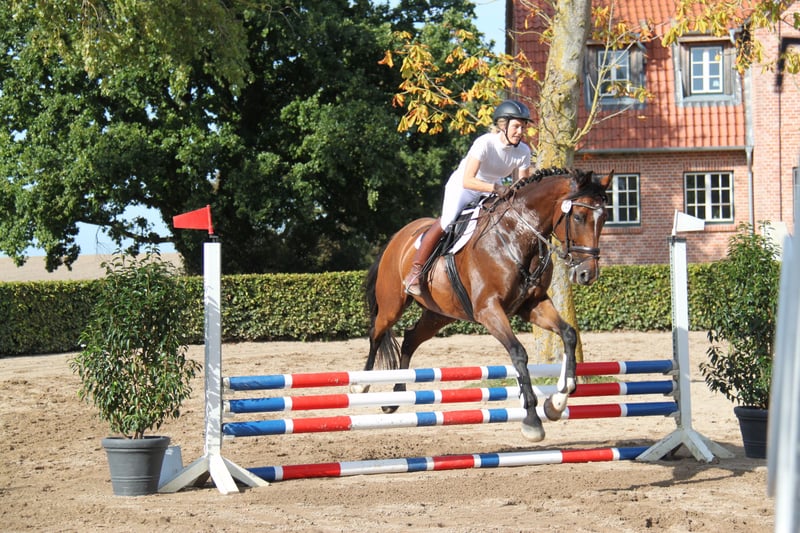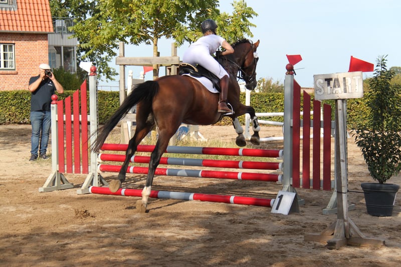 Mio ist sehr bequem und leicht zu reiten, springt sehr gern und gut sowohl im Parcours als auch im Gelände. Er ist sehr fleißig und möchte gern alles richtig machen. Dennoch braucht er einen sicheren Reiter, der ihm Vertrauen gibt. Er ist kein Anfängerpferd. Derzeit wird er aber u.a. von einem 14j Mädchen geritten, die stark reitet und sehr gut mit ihm zurecht kommt. Die jetzige Besitzerin hat ihn 4j direkt vom Züchter gekauft. Mio ist Schmied- und verladefromm und generell sehr umgänglich. Mio ist absolut gesund und neigt zum Glück zu keinerlei gesundheitlichen Themen. Er ist in der Herde sehr umgänglich. Weitere Fotos und Videos gerne auf Anfrage.
