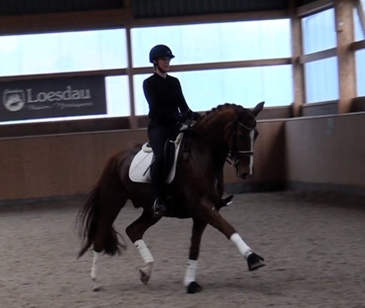 We are selling our chestnut gelding born in 2016 (height 171 cm). He is an exceptional horse with a lot of charm and expression. Additionally, he has a sensitive temperament. He is a true heart horse that requires a lot of trust from the rider. On this basis, he brings much joy and shows his full potential in daily work. This year, he was able to earn ribbons in a few competitions at the M level and gained initial experience at the S level.