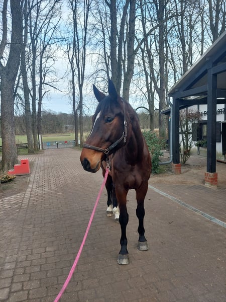 Hannoveraner Wallach – 9 Jahre – 176 cm Zum Verkauf steht ein 9-jähriger Hannoveraner Wallach mit einem Stockmaß von 176 cm. • Drei gute Grundgangarten mit gutem Vorwärtsdrang, keine Sporen oder Gerte erforderlich • Brav im Umgang, gelassen, Putzen und Duschen problemlos • Spaziergänge auch allein möglich • In der Dressur befindet er sich auf A-Niveau • Aufmerksam an der Longe und in der Stangenarbeit • Aktuell wird er von einem jungen Mädchen geritten • Nicht für Anfänger geeignet, er benötigt einen erfahrenen Reiter mit ruhigem Sitz und ruhigen Händen Voltigiergurt mit Reiter an der Longe haben wir auch angewandt. Regelmäßige Hufpflege, Impfungen und Entwurmungen sind auf dem aktuellen Stand. Die Zähne wurden im Mai 2025 gemacht. Ein röntgenologischer Befund liegt vor. Eine neue Ankaufsuntersuchung ist mit Kostenübernahme durch den Käufer möglich. Weiteres gerne persönlich.