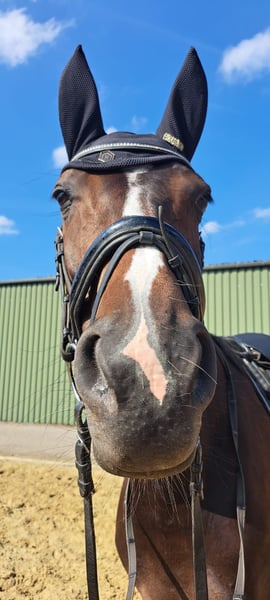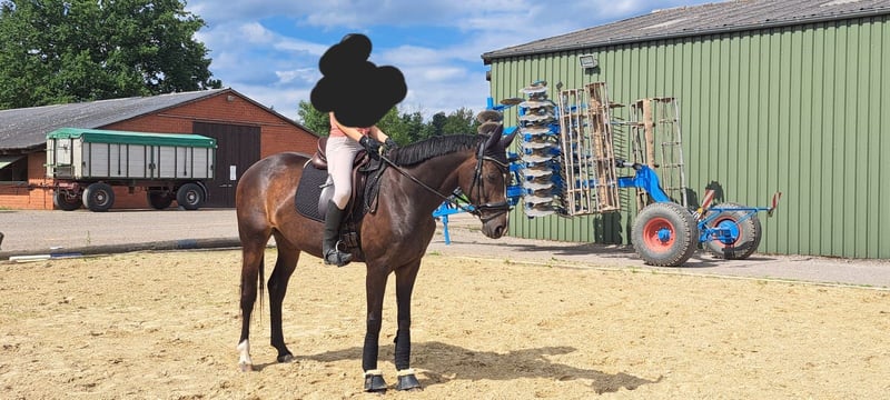 Schweren Herzens, aufgrund einer Bestandsverkleinerung, suchen wir für diese bildhübsche Stute einen einfühlsamen, erfahrenen Reiter, ein liebevolles Zuhause. Dance Monkey, genannt Kaya, ist eine 10-jährige Hannoveraner Stute und circa 1,62 m groß. Sie ist absolut brav, gesund und unkompliziert im Umgang, verlade- und schmiedefromm sowie sehr verträglich mit anderen Pferden. Beim Reiten möchte sie gerne immer alles richtig machen und hat entsprechendes Go. Sie verfügt über drei sehr gute Grundgangarten, ist unerschrocken und reagiert auf ganz feine Hilfen. Dance Monkey wurde von uns freizeitmäßig geritten, wurde aber beim Vorbesitzer in Dressurpferde A/ Dressurreiter A erfolgreich vorgestellt. Beim Springen hat Dance Monkey bisher wenig Erfahrung gesammelt, sie ist bei uns aber auch brav über kleine Hindernisse gegangen. Working Equitation macht sie auch absolut brav und gerne. Aufgrund ihrer Abstammung und ihrer Schönheit können wir uns Dance Monkey ebenso sehr gut als Zuchtstute vorstellen. Da Dance Monkey gelegentlich in stressbedingten Ausnahmesituationen webt, wäre eine Paddockbox, eine Außenstallhaltung oder eine Box mit viel Weidegang für sie wünschenswert Röntgenbilder liegen bereits vor. Eine AKU kann jedoch gerne vom Käufer gemacht werden.