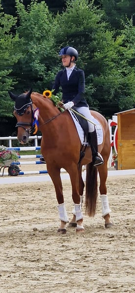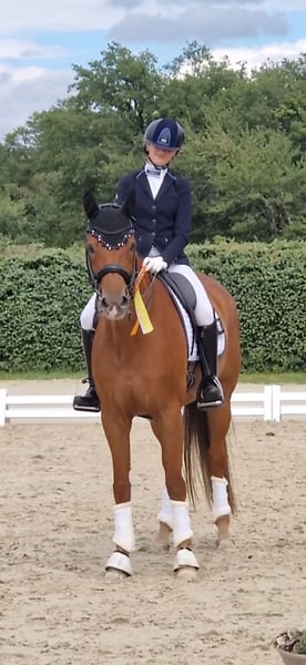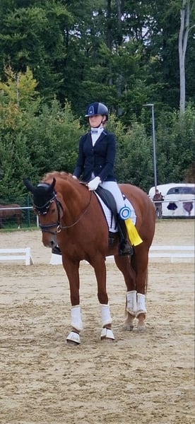 Zum Verkauf steht diese 10jährige Fuchsstute von Sir Donnerhall x Fürst Nymphenburg. Seit 2020 wurde sie fast ausschließlich von einem jungen Mädchen geritten und auf Turnieren von E-Dressur bis M** vorgestellt. Diese Turniersaison hat sie sowohl Trensen- als auch Kandaren-L gewonnen und konnte sich mehrmals in Dressurprüfungen der Klasse M platzieren. Serienwechsel und Arbeitspirouetten sind bereits angelegt. Sie macht auch gerne Gymnastiksprünge. Die Stute koppt, was ihr aber bisher keinerlei Probleme bereitet hat. Videos und weitere Informationen gerne auf Anfrage per WhatsApp unter 0039-3939432636