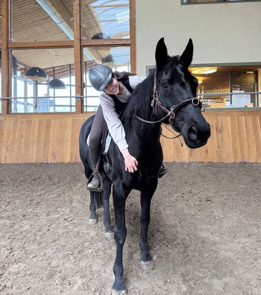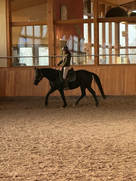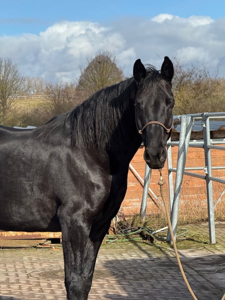Schweren Herzens verkaufen wir unsere 10 jährige Hannoveranerstute von Schwarzgold x Don Frederico. Ihr Stockmaß beträgt 1,60. In der Vergangenheit hat sie drei Fohlen bekommen. Aktuell ist sie zum Anreiten bei Lisanne Hähndel. Im Training dort zeigt sie sich motiviert und mit ordentlich „Go“. Sie bringt alles mit, was man sich von einer zukünftigen Partnerin wünscht. Gleichzeitig ist sie sehr menschenbezogen, liebt ausgiebige Kuscheleinheiten und möchte ihrem Menschen einfach gefallen. Sie zeigt sich dort sehr lernwillig, aufmerksam und mit großem Potenzial für ihre weitere Ausbildung. Sie arbeitet motiviert mit und bringt viel Herz sowie eine positive Arbeitseinstellung mit. Aufgrund ihrer Sensibilität sucht sie eine liebevolle, aber konsequente Führung durch eine erfahrene Bezugsperson, die ihr Sicherheit gibt und sie fair weiter ausbildet. Bei passender Förderung entwickelt sie sich zu einer tollen Partnerin mit feinem Charakter. Eine Stute mit ganz viel Herz, die mit ihrem Menschen eng verbunden sein möchte. Im Januar/Februar 2026 war der Zahnarzt und die Osteopathin da. Reitvideos sind vorhanden und können auf Anfrage verschickt werden.