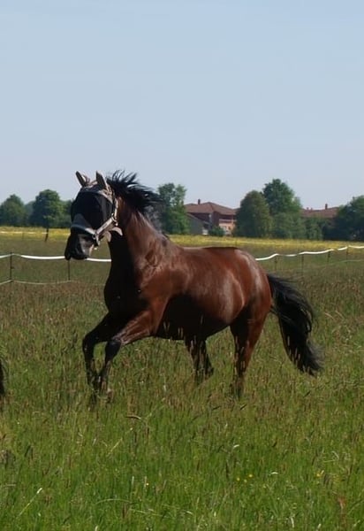 Don Chérie – Cavalla di 10 anni di Don Nobless in vendita su commissione. ✨ Addestrata con successo, versatile e adatta al dressage, a livello L/LP ✨ Su incarico, cerchiamo per questa incantevole cavalla (nata nel 2015, altezza circa 155 cm) una famiglia amorevole e attenta al benessere del cavallo. È il sogno di ogni ragazza e possiede tutte le qualità che si desiderano in un’amica a quattro zampe. Chérie è ben addestrata, un partner affidabile per il dressage, il lavoro a terra, piccoli salti e il passeggio in campagna. La decisione di metterla in vendita ci è molto difficile. Non si tratta di rinunciare a lei, ma di fare la scelta giusta, poiché per motivi di tempo non possiamo più dedicarle le attenzioni che merita. Chérie si distingue soprattutto per il suo carattere sincero, affidabile e affettuoso. È semplice da gestire nella quotidianità, stabile e amichevole. Sotto la sella lavora con impegno, motivata e con gioia. Ama imparare cose nuove e si impegna sempre per soddisfare il suo cavaliere. Grazie alla sua formazione e al suo carattere gentile, cerca sempre di portare un sorriso sul volto di chi la monta. Conosce praticamente tutto e adora la varietà: lavoro a terra, longe, doppia longe, cavaletti e piccoli salti, passeggiate in campagna e lavoro di dressage. La sua calma la rende adatta anche ai bambini. Inoltre, va a piedi nudi, è tranquilla con i ferri e il carico, regolarmente vaccinata, dewormata, seguita dal veterinario e dall’osteopata. È facile da gestire nel branco e si inserisce bene. In estate ha trascorso le notti in paddock con box, in inverno in paddock con box. Per Chérie desideriamo trovare qualcuno con esperienza, cuore e passione per un partner versatile e affidabile. Potrebbe tranquillamente partecipare a competizioni, anche se finora non sono stati presentati a livello ufficiale. Importante: esclusi commercianti e aziende scolastiche. Cherie è una cavalla dal cuore grande e merita solo il meglio. La sua attrezzatura (sella, briglia, coperte, controllati e adattati annualmente) può essere acquistata insieme a lei. Su richiesta, possiamo inviare video. La vendita avviene su incarico della proprietaria. È possibile visitarla e fare un test ride previo accordo. Per evitare il turismo equestre, chiediamo una quota di 30 €, che sarà detratta dal prezzo di acquisto.