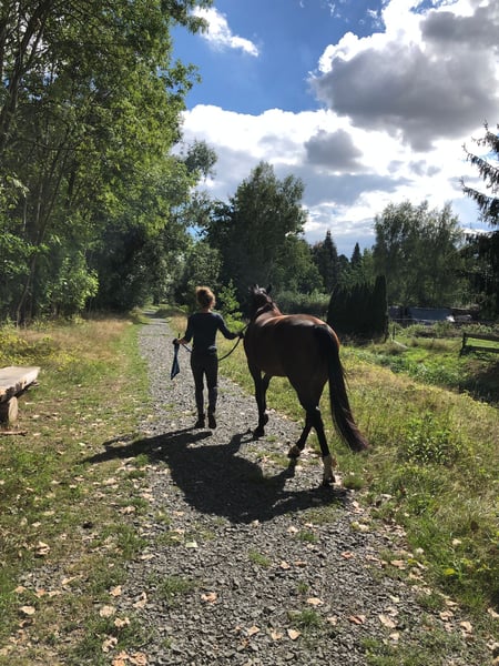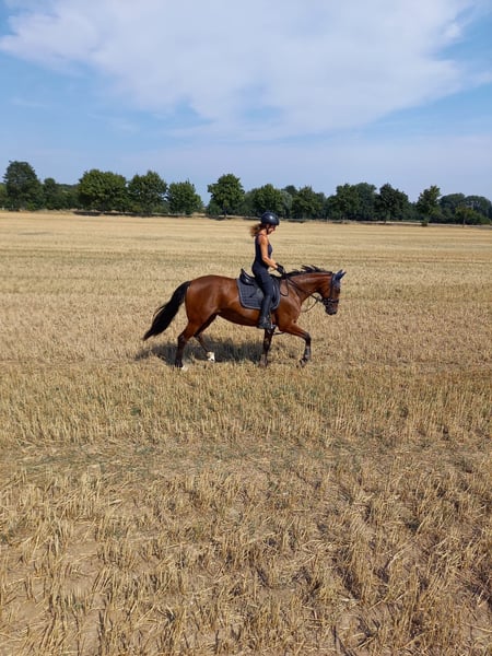 Don Chérie – 10-year-old mare by Don Nobless for sale on behalf of the owner. ✨ Well-behaved, versatile, and trained in dressage up to A / L level ✨ On behalf of the owner, we are seeking a loving and horse-friendly home for the charming mare Don Chérie (born 2015, approx. 15.5 hh). She is a true dream for any girl and possesses everything one could wish for in a four-legged companion. Chérie is well-trained and a reliable partner for dressage, ground work, small jumps, and trail riding. Making the decision to sell her was especially difficult for us. It is not a decision against her, but for her, as we must admit that we cannot do her justice due to time constraints. Chérie impresses primarily with her warm, honest, and dependable nature. She is straightforward in daily handling, resilient, and friendly. Under saddle, she works diligently, motivated, and with joy. She enjoys learning new things and always strives to please her rider. Thanks to her training and gentle temperament, she always aims to bring a smile to her handler’s face. She is familiar with almost everything and loves variety: ground work, longeing, double longeing, cavaletti, small jumps, trail riding, and dressage work all bring her joy. Her calm demeanor also makes her suitable for children. She is barefoot, and is farrier- and loading-trainable, regularly vaccinated, dewormed, and receives dental and osteopathic care. She is easy to integrate into a herd and gets along well. During the summer, she was on pasture with a night box, and in winter, on a paddock with a stable. We are looking for someone with horse knowledge, heart, and joy in having a versatile, reliable partner for Chérie. She would surely perform well in competitions, but she has not been shown at any official events so far. Important: Dealers and riding schools are excluded. Cherie is a heart horse and deserves only the best. Her equipment (annually checked and fitted saddle, bridle, blankets) can be purchased additionally. Videos can be sent upon request. The sale is conducted on behalf of the owner. Viewings and trial rides are, of course, possible by arrangement. To avoid riding tourism, we charge €30 for a trial ride, which will be deducted from the purchase price if she is bought.