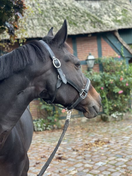 For sale on behalf of a client: Elegant, Versatile Hannoverian Mare! This beautiful dark-coated Hannoverian mare was born in 2015 and has a height of 16.1 hh, placing her in the ideal middleweight category. She is an all-rounder, excelling in eventing as well as other disciplines. She has placements in cross-country, jumping A, dressage A, and eventing, and has won an A-level style cross-country competition. In handling, the mare is very well-behaved. She loads and travels easily in trailer and truck, gets along well with other horses, and is easy to clip. Under saddle, she is not spooky, not hot, but also not overly energetic. She is sensitive, which makes her unsuitable for beginners. She is familiar with numerous different venues, and hacking alone or in a group poses no problem for her. Due to her interesting pedigree and good conformation, she is also of interest for breeding. A TÜV report from 2020 (age 5) is available and shows no issues. If you are interested or would like more information, we look forward to hearing from you!