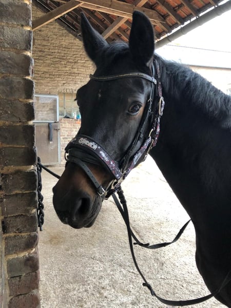 Lou is an exceptionally charming and friendly mare, whose wonderful temperament made her suitable as a riding school horse with us. Although she is very well-behaved, she does not seem to be the type for frequent rider changes or for small children or beginners. Therefore, we would like to rehome her into private ownership.