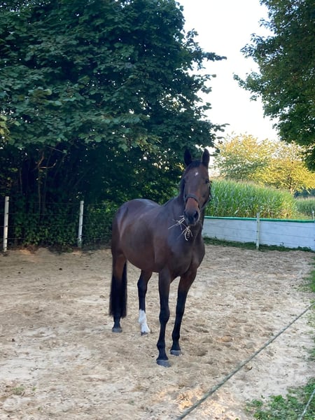 Only available for the best placement! Very easy to handle and a wonderful broodmare. With excellent hind legs and a great conformation. In foal for early June 2026 to Sebastino PS. Not ridden. Healthy. Registered in Hannover and Westphalia.