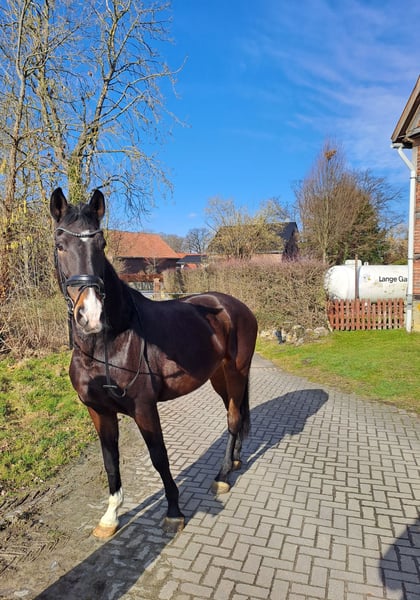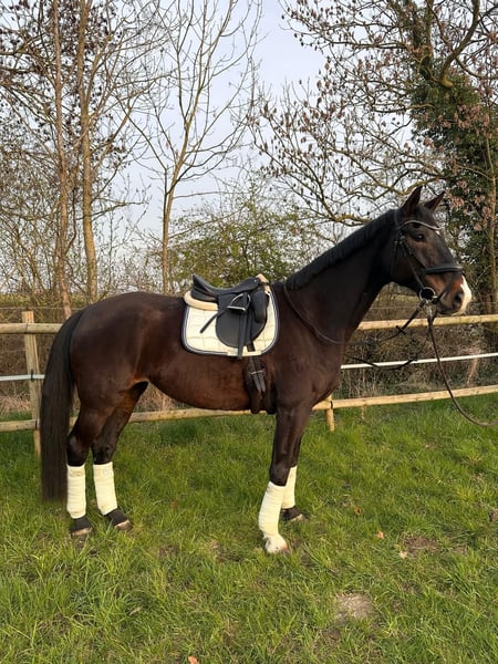 ✨ Hannoveraner Stute – 13 Jahre – ca. 1,72 m groß✨ Diese elegante Hannoveraner Stute sucht ein neues Zuhause. Sie wurde 4 jährig angeritten, bekam dann zwei Fohlen. Zähne wurden im Dezember frisch gemacht und ist regelmäßig beim Hufschmied, sie steht Barhuf. Charakter & Umgang Die Stute ist im täglichen Umgang sehr artig, freundlich und unkompliziert. Sie kennt Hunde, Anhängerfahrten, Hufschmied, Tierarzt sowie landwirtschaftliche Fahrzeuge wie Traktoren. Ausbildung & Reiten Unter dem Sattel zeigt sie sich motiviert, lernbereit und ist flott unterwegs. Sie verfügt über ordentliche Grundgänge und könnte mit einem erfahrenen, sicheren Reiter perspektivisch auch auf Turnieren starten – Turniererfahrung hat sie bisher jedoch nicht. Aktuell ist sie in Beritt und kann dort probe geritten werden. Wichtig: Sie ist nicht für Anfänger oder Wiedereinsteiger geeignet, da sie klare, ruhige Führung und Sicherheit vom Reiter benötigt. Geeignet für Reiter, die Spaß daran haben, ein gut veranlagtes Pferd weiter auszubilden und eine zuverlässige Partnerschaft aufzubauen. Bei Interesse oder weiteren Fragen freuen wir uns über eine Nachricht! Videos und weitere Fotos können bei Interesse verschickt werden