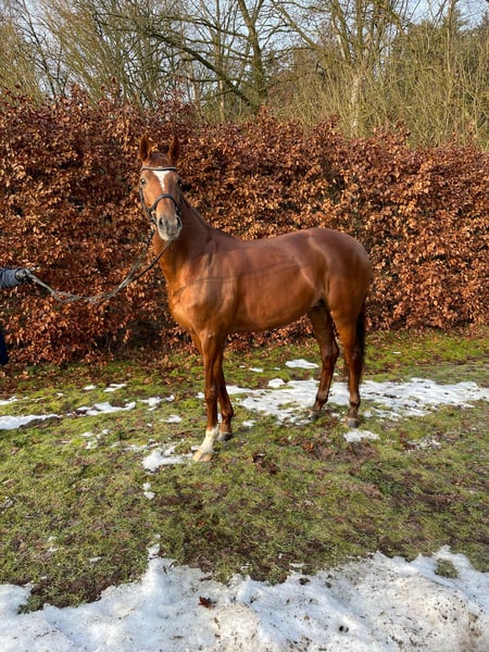 Bonnie is a 13-year-old Hanoverian mare that has been trained very versatile over the past few years. She confidently masters all dressage movements up to class L and jumps at L level, with placings in A** show jumping competitions. She is an exceptionally well-behaved, reliable horse that enjoys a variety of activities, whether it's competing, trail riding, eventing, riding without a saddle, or simply exploring different environments – Bonnie takes it all in stride and appreciates the variety! In daily handling, she is extremely friendly; the blacksmith and veterinarian are no problem at all. She also loves just hanging out, whether it's grooming, fussing around, or going for a walk.