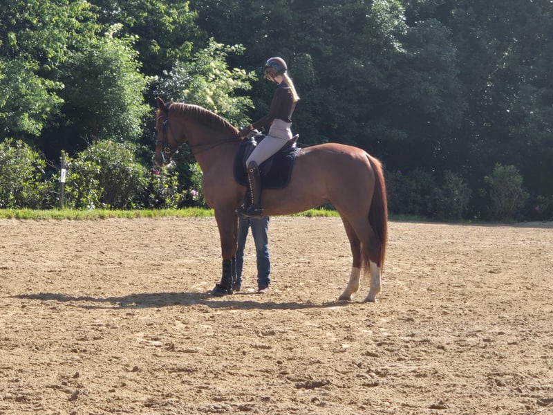 Ich suche für meine besondere Stute Maxime ein neues Zuhause – zunächst zur Verfügung, bei guter Zusammenarbeit ist ein späterer Kauf möglich. Über Maxime: Maxime ist seit dem dritten Lebensjahr in meinem Besitz und wurde von mir selbst mit viel Zeit und Geduld ausgebildet. Sie ist umgänglich, sozial und fein zu reiten – eine ehrliche Stute, die für ihre Bezugsperson alles gibt. Sie braucht aber jemanden mit Feingefühl, der nicht nur mitreiten will, sondern auch bereit ist, mit ihr zu arbeiten und sich weiterzuentwickeln. Sie ist vielseitig einsetzbar: ✔ Dressur ist ihre Stärke – sie kennt Galopppirouetten, Piaffe-Ansätze und steht kurz vor der Klasse S (einzig der fliegende Wechsel rechts fällt ihr schwer) ✔ Sie liebt Ausritte ins Gelände und geht auch kleine Sprünge mit Freude mit ✔ Brav im Umgang, verladefromm, schmiedefromm, verträglich mit Artgenossen Gesundheit & Pflege: Maxime ist gesund und wird regelmäßig dem Hufschmied, Physiotherapeuten/Osteopathen vorgestellt. Sie ist vollständig geimpft und wird rundum sorgfältig betreut. Was ich mir wünsche: Ich stelle Maxime zunächst zur Verfügung, am liebsten im Raum Gevelsberg oder Umgebung, damit ich sie weiterhin begleiten und auf Wunsch auch noch 1–2x pro Woche mitreiten bzw. Unterricht geben kann (ich bin ausgebildete Trainerin und Bereiterin). Eine artgerechte Haltung (Offenstall oder Box mit täglichem Auslauf und Sozialkontakt) ist mir dabei besonders wichtig. Bei gegenseitigem Vertrauen und gutem Verlauf ist eine spätere Kaufoption möglich – Konditionen besprechen wir individuell. Wichtig: 💡 Ich wünsche mir Interessenten, die sich der Verantwortung und der laufenden Kosten eines Pferdes bewusst sind. Maxime ist kein Anfängerpferd – sie sucht eine klare, faire Bezugsperson mit Pferdeverstand. Wer das mitbringt, bekommt eine hochmotivierte, feinfühlige Partnerin mit Qualität, Charakter und viel Herz. Bei ernsthaftem Interesse freue ich mich auf eine aussagekräftige Nachricht mit Infos zu dir, deinem Stall und deinen Vorstellungen. 💛 *Ich wünsche mir für Maxime jemanden, der sie genauso schätzt, liebt und fördert, wie ich es all die Jahre getan habe.* 💛